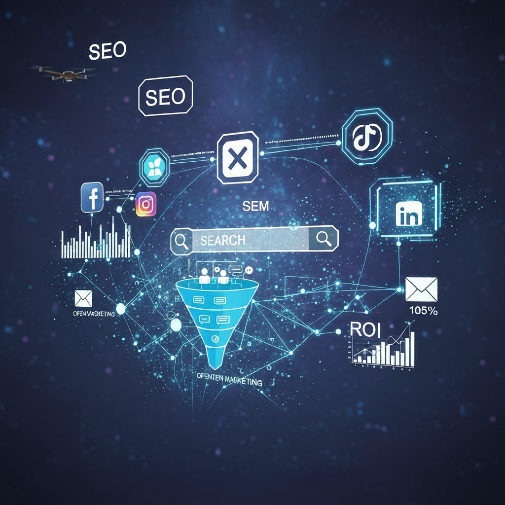 No creemos en piezas aisladas. Tu marketing necesita funcionar como un todo conectado, diseñado para atraer clientes, automatizar procesos y hacerte crecer de manera sostenible. Por eso construimos contigo una Estrategia Integral donde cada servicio se conecta y multiplica resultados.